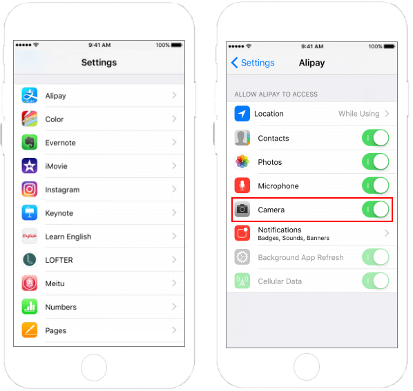 Adjust the permissions for the camera by toggling the button on the right-hand side.Managing Privacy Settings