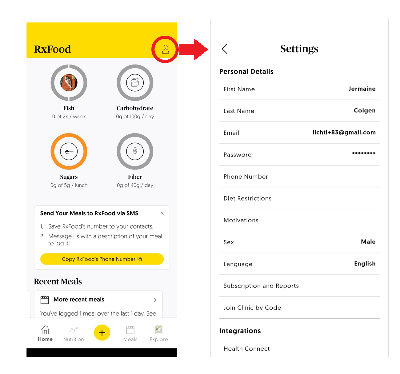 Send an SMS of your meal, and RxFood will create and enter a meal log for you.